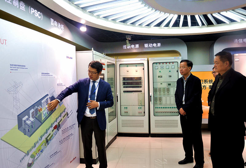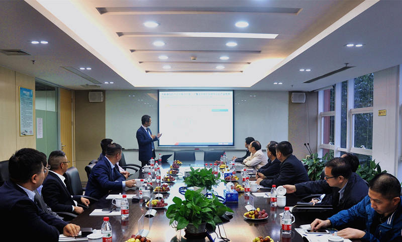 圖為:鼎漢副總裁萬卿正在向蕪湖市領(lǐng)導(dǎo)介紹公司整體情況和主要產(chǎn)品